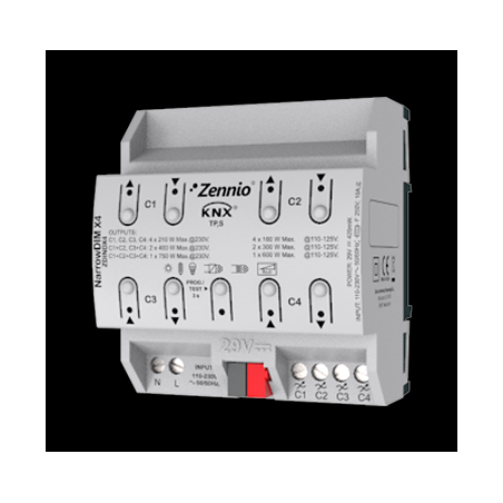 Description: Variateur universel (RLC, LED, CFL) pour rail DIN (4.5 unités)4 canaux 210 W à 230 VAC (160 W à 110 VAC)Canal double jusqu'à 400 W à 230 VAC (300 W à 110 VAC)Canal quadruple jusqu'à 750 W à 230 VAC (600 W à 110 VAC)Pas de charge minimaleDétection automatique de charge (RLC)Courbes de variation pour LED et CFL configurablesContrle manuel10 fonctions logiques indépendantesDétection de court-circuit, panne d'alimentation, surtension, surchauffe, fréquence anormaleDimensions 67 x 90 x 79mmRail DIN 4,5 modules