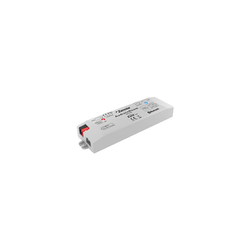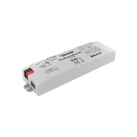 Description: Contrleur audio avec récepteur Bluetooth2 canaux stéréo 20W ou 4 canaux mono 10W4 - 16 ohms par canalBluetooth version 4.2Activer le mode de couplage Bluetooth via KNXSécurité avec code PINFonctionnement de Play / Pause, Previous / Next, Volume, Mute via KNXLED de test verte: mode de couplage BluetoothLED de test bleu: Bluetooth coupléEntrée AUXAlimentation: 24VDC 2.5AMessages d'erreurAccessoires:ZPS-AUX1: Alimentation 24VDC 2.5AZAC-LS3: Haut-parleur 6,5 pouces 8 ohmsZAC-LS4: Haut-parleur 3,5 pouces 4 ohms