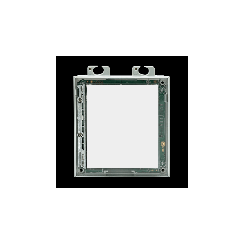 Description: Permet d'afficher des informations à l'intention des visiteurs de l'immeuble. L'information peut être insérée dans le panneau sur une feuille plastique imprimée, qui pourra être facilement lisible grâce au rétro-éclairage.Contient 2 connexions de bus GetFace à coupler à un autre moduleCâble de bus GetFace inclus (220mm de longueur).
