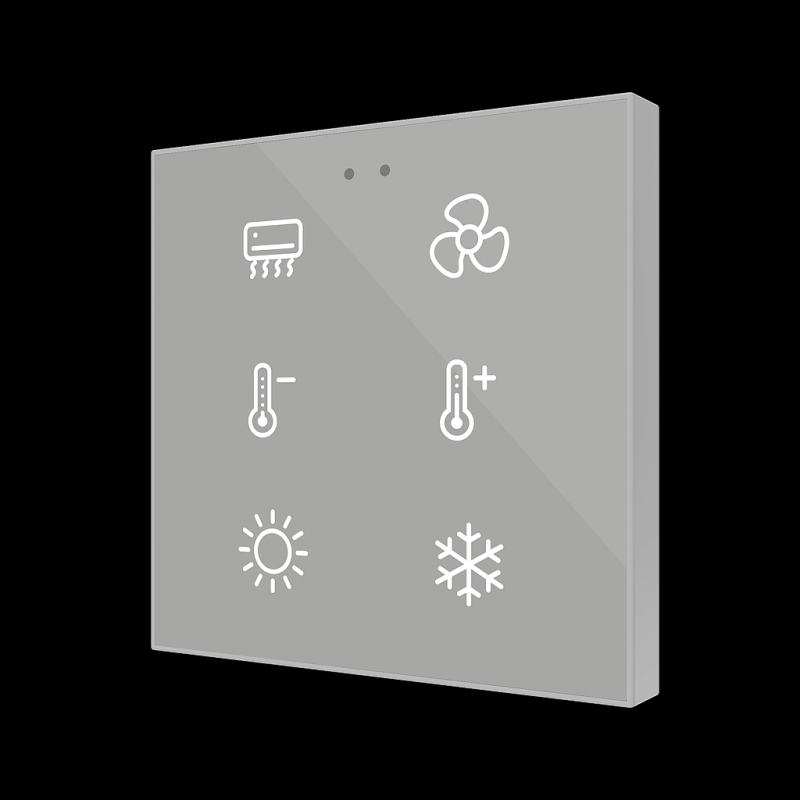 Description: Interrupteurs capacitifs rétro-éclairés avec 1, 2, 4 et 6 boutonsFonction avec pression courte et longueStatus LED avec mode nuitFlat design (9mm)Avec détecteur de luminosité ambiante et capteur de proximitéSonde interne de température1 régulateur PI pour le chauffage et refroidissementSignal sonore quand on touche les surfaces tactiles (désactivable via le bus), comme sonnette ou alarmeMontage: à encastrer (horizontal ou vertical)2 entrées analogiques/numériques pour des boutons poussoirs, des capteurs de