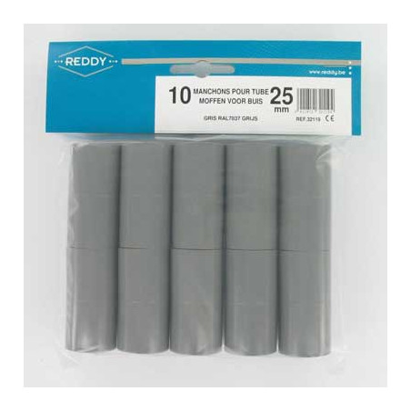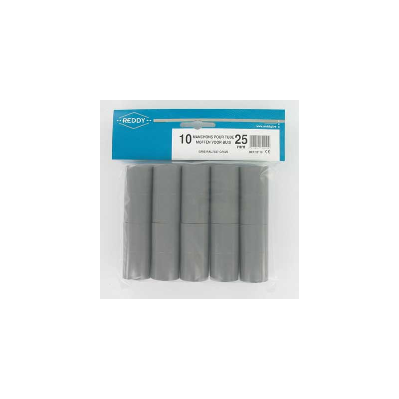 Marque: REDDYRéférence: 32119Description: Sachet à suspendre de 10 MANCHONS 25mm GRIS RAL 7037