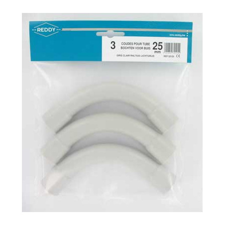 Marque: REDDYRéférence: 32125Description: Sachet à suspendre de 3 COUDES 25mm GRIS CLAIR RAL 7035