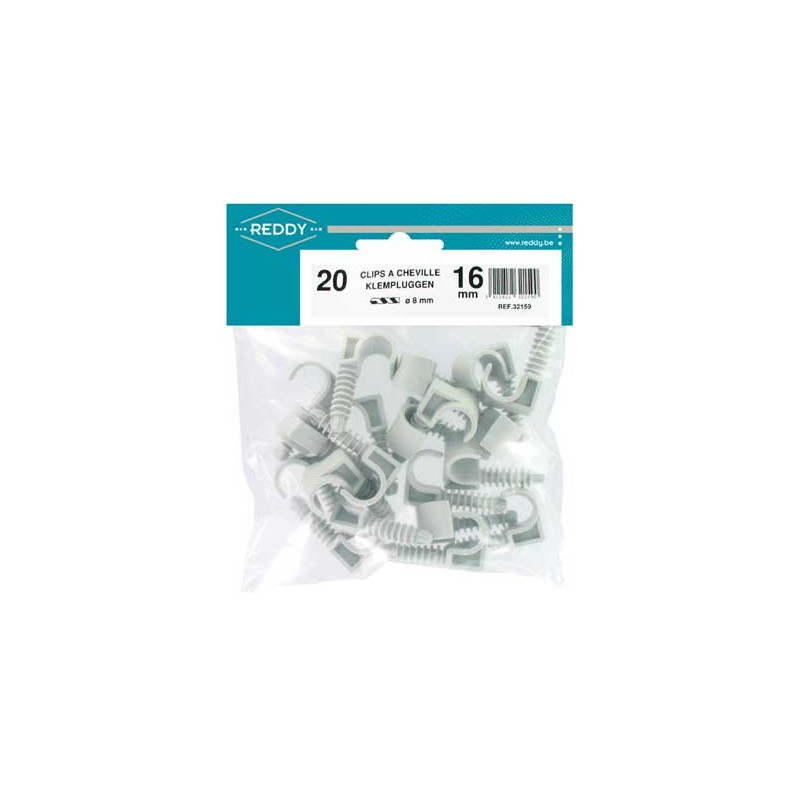 Marque: REDDYRéférence: 32159Description: Sachet à suspendre de 20 CLIPS A CHEVILLE DIAM.16mm