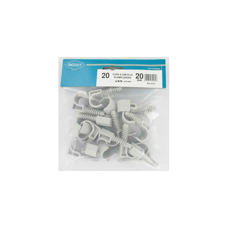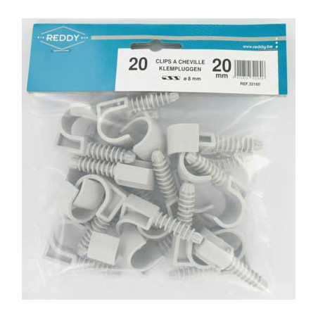 Marque: REDDYRéférence: 32160Description: Sachet à suspendre de 20 CLIPS A CHEVILLE DIAM.20mm