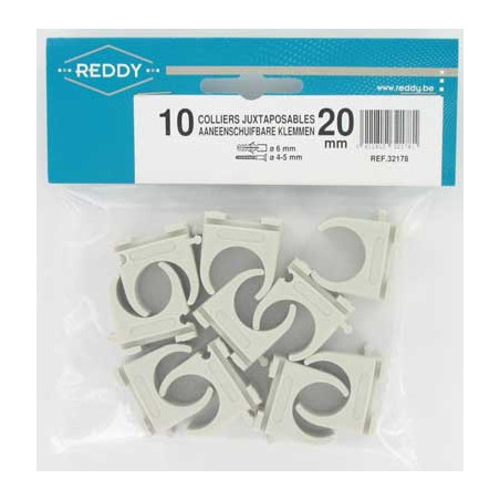 Marque: REDDYRéférence: 32178Description: Sachet à suspendre de 10 COLLIERS 20mm JUXTAPOSABLES
