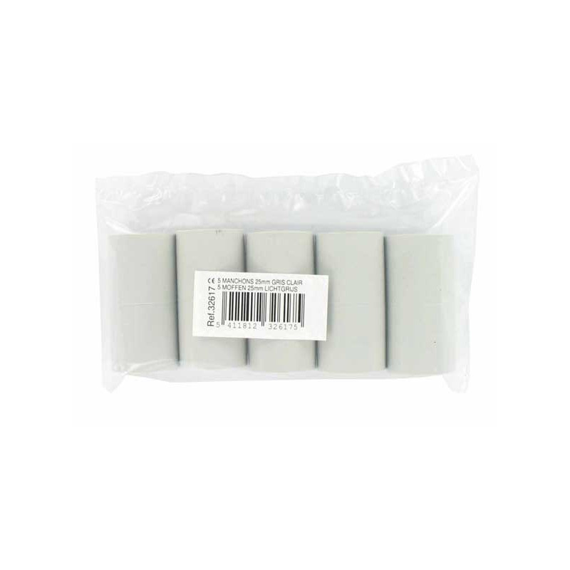 Description: Sachet de 5 MANCHONS 25mm GRIS CLAIR RAL 7035