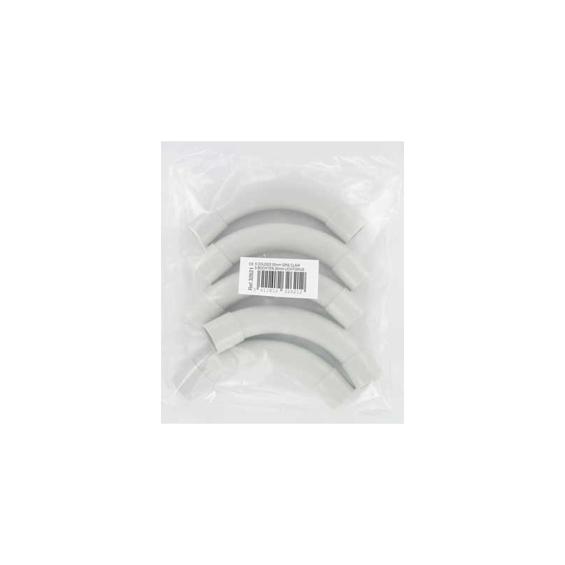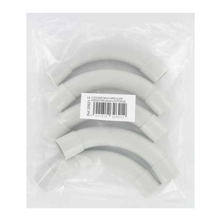 Description: Sachet de 5 COUDES 20mm GRIS CLAIR RAL 7035