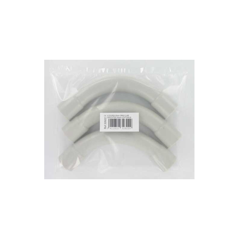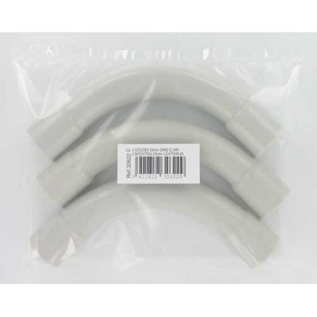 Description: Sachet de 3 COUDES 25mm GRIS CLAIR RAL 7035