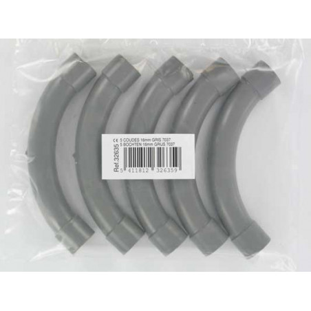 Marque: REDDYRéférence: 32635Description: Sachet de 5 COUDES 16mm GRIS RAL 7037