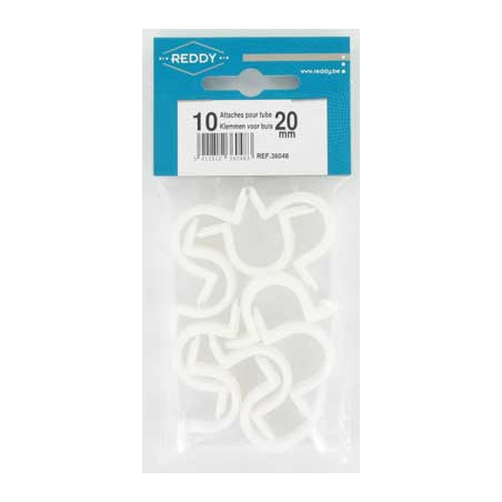 Marque: REDDYRéférence: 36048Description: Sachet à suspendre de 10 ATTACHES POUR TUBE 20mm