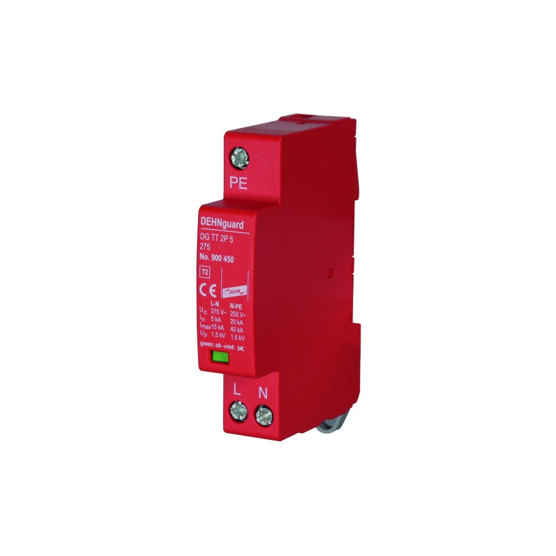 PARAFOUDRE MODULAIR COMPACT POUR RÉSEAUX MONOPHASÉS EN TT OU TN. SPD TYPE 2 SELON EN61643-11.COURANT DÉCOULEMENT 8/20 5 KANIVEAU DE PROTECTION 1,5 KV