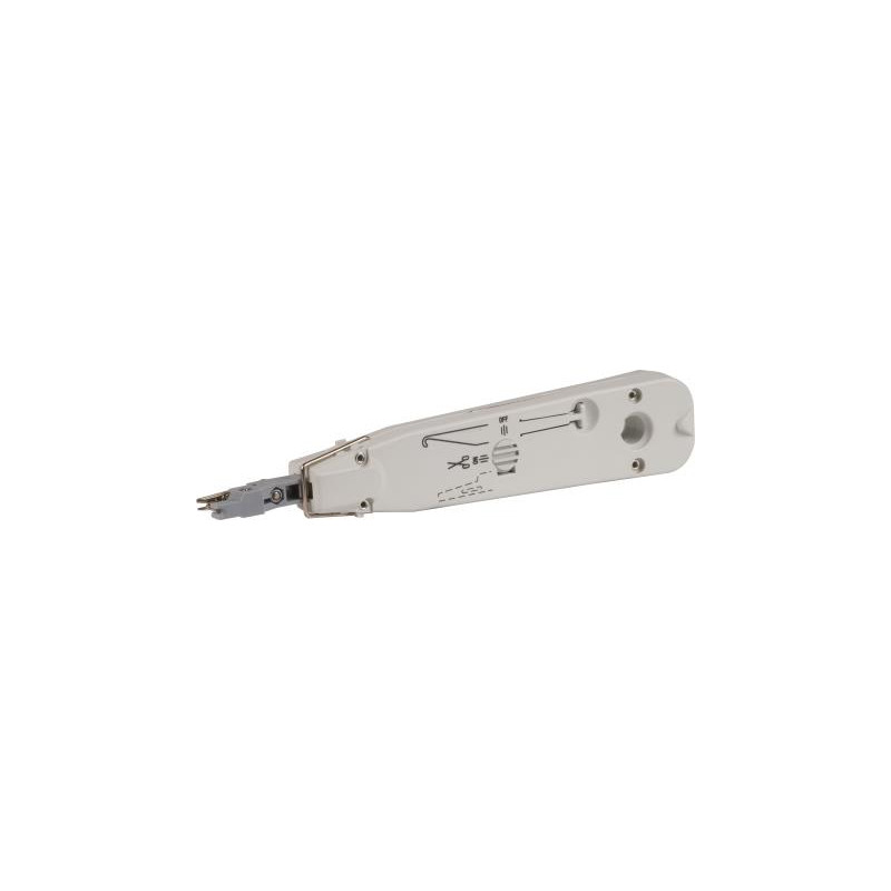 OUTIL DE RACCORDEMENT AVEC DÉTECTEUR POUR TECHNIQUE DE CONNEXION LSA POUR LE RACCORDEMENT ET LAJUSTEMENT DE LA LONGUEUR DES CONDUCTEURS. AVEC CROCHET REPLIABLE ET LAME DE DÉVERROUILLAGE.