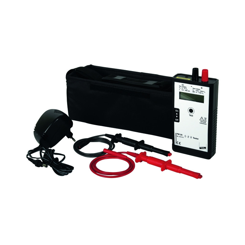 TESTEUR COMBINÉ POUR LE TEST DE LA TENSION DAMORÇAGE DE PARAFOUDRES AVEC ÉCLATEURS À GAZ, VARISTANCES OU DIODES ZENER. ETUI DE RANGEMENT ET ACCESSOIRES DE TEST INCLUS.