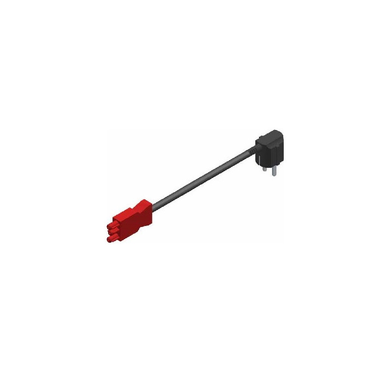 CABLE D'ALIMENTATION FLEXIBLE DE 2 METRES DE LONG, TYPE H05VV-F 3G 2,5MM2 AVECEXTREMITE 1: UNE PRISE NOIRE AVEC BROCHE DE TERRE.EXTREMITE 2: UN CONNECTEUR RAPIDE FEMELLE ROUGE A TROIS POLES WIELAND GST18 .