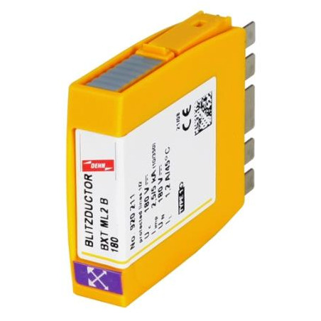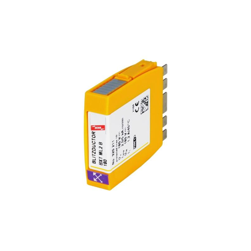MODULE DE PROTECTION CONTRE LES COURANTS DE FOUDRE AVEC LIFECHECK, À FAIBLE ENCOMBREMENT, POUR UNE LARGE APPLICATION. UTILISABLE PRINCIPALEMENT EN COMPLÉMENT DU PARASURTENSEUR TYPE2-P1 INSTALLÉ EN AVAL. TENSION NOM. UN 180V.