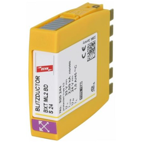 MODULE DE PROTECTION COMBINÉ AVEC LIFECHECK, À FAIBLE ENCOMBREMENT, POUR LA PROTECTION SUR UNE PAIRE DINTERFACES SYMÉTRIQUES AVEC SÉPARATION GALVANIQUE, EN OPTION RACCORDEMENT DIRECT OU INDIRECT À LA TERRE. TENSION NOM. UN 24V.