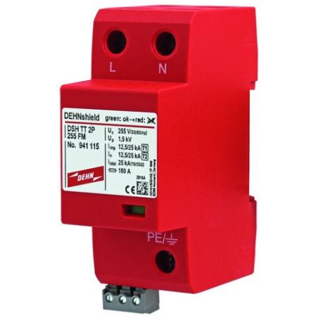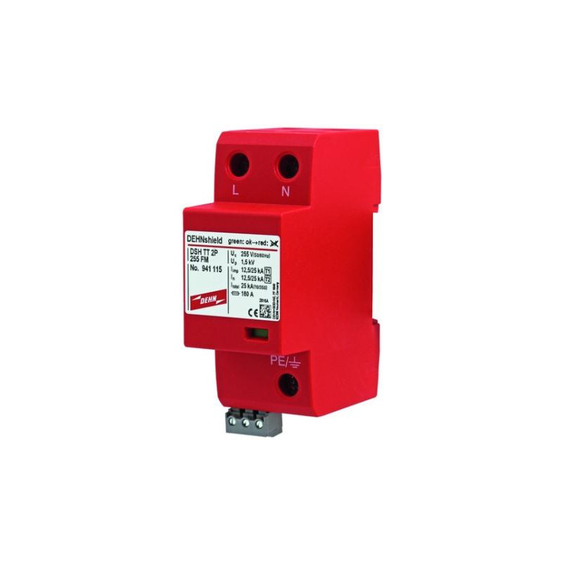 DEHNSHIELD TT 2P 255 PARAFOUDRE-PARASURTENSION COMPACT COMBINE MODULAIRE UNIPOLAIRE POUR RESEAUX TT OU TNS (SCHEMA '1+1'). TYPE 1 SELON EN61643-11. CAPACITE D'ECOULEMENT 25KA(10/350). NIVEAU DE PROTECTION: < 1,5KV. MODULE AVEC HAUTE CAPACITE D'EXTINCTION