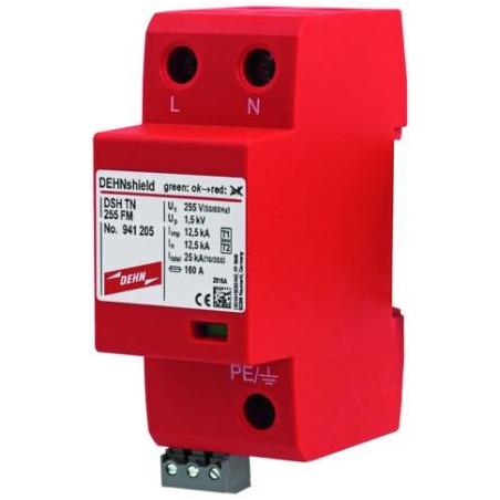 DEHNSHIELD TN 255 PARAFOUDRE-PARASURTENSION COMPACT COMBINE MODULAIRE BIPOLAIRE POUR RESEAUX TN. TYPE 1 SELON EN61643-11. CAPACITE D'ECOULEMENT 25KA(10/350). NIVEAU DE PROTECTION: <1,5KV. MODULE AVEC HAUTE CAPACITE D'EXTINCTION DU COURANT DE SUITE. AVEC C