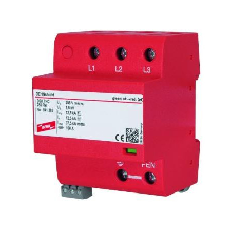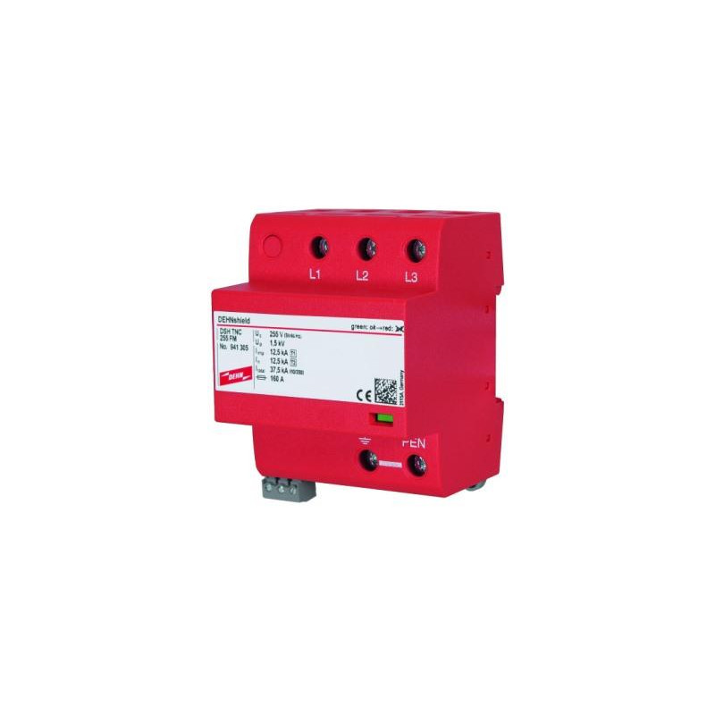 DEHNSHIELD TNC 255 PARAFOUDRE-PARASURTENSION COMPACT COMBINE MODULAIRE TRIPOLAIRE POUR RESEAUX TNC. TYPE 1 SELON EN61643-11. CAPACITE D'ECOULEMENT 50KA(10/350). NIVEAU DE PROTECTION: < 1,5KV. MODULE AVEC HAUTE CAPACITE D'EXTINCTION DU COURANT DE SUITE. AV