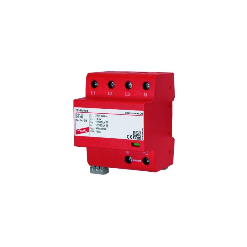 DEHNSHIELD TT 255 PARAFOUDRE-PARASURTENSION COMPACT COMBINÉ MODULAIRE TÈTRAPOLAIRE POUR RÉSEAUX TT ET TNS. TYPE 1 SELON 61643-11. CAPACITÉ DÉCOULEMENT 50KA10/350. NIVEAU DE PROTECTION 1,5KV. MODULE AVEC HAUTE CAPACITÉ DEXTINCTION DU COURANT DE SUIT