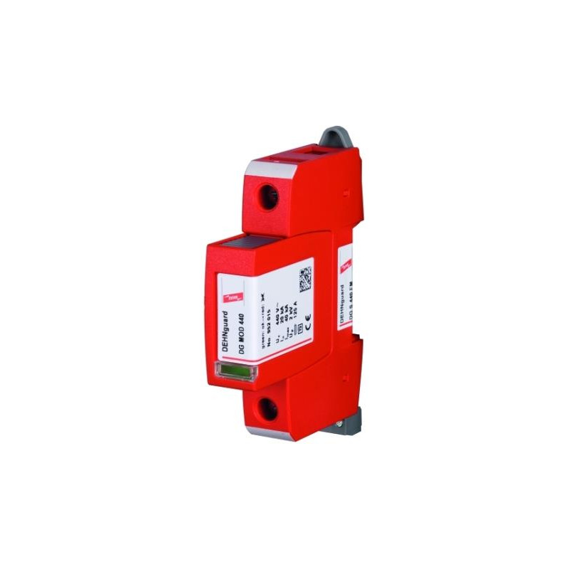 DEHNGUARD S 440 FM PARASURTENSION UNIPOLAIRE, DEBROCHABLE, COMPRENANT L'EMBASE ET LE MODULE DE PROTECTION. TENSION MAXIMALE ADMISSIBLE EN REGIME PERMANENT : 440V AC. COURANT D'ECOULEMENT NOM :20KA(8/20). NIVEAU DE PROTECTION < 2KV. TELESIGNALISATION PAR C