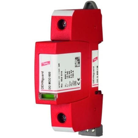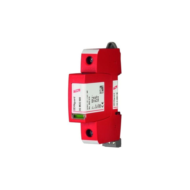 DEHNGUARD S 600 FM PARASURTENSION UNIPOLAIRE, DEBROCHABLE, COMPRENANT L'EMBASE ET LE MODULE DE PROTECTION. TENSION MAXIMALE ADMISSIBLE EN REGIME PERMANENT : 600V AC. COURANT D'ECOULEMENT NOM :15KA(8/20). NIVEAU DE PROTECTION <2,5KV. TELESIGNALISATION PAR