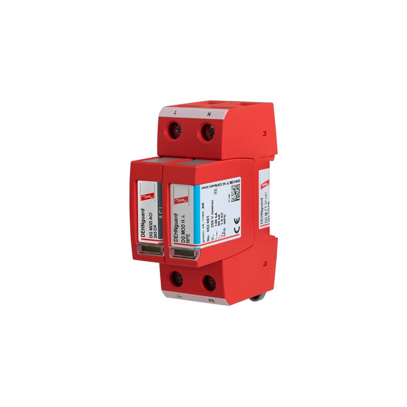 DEHNGUARD M TT 2P ACI 275 FM. PARASURTENSION MODULAIRE BIPOLAIRE AVEC ELEMENT DE DECONNEXION AVANCE (ACI) POUR RESEAUX MONOPHASES TT. PROTECTION DU TYPE 2 SELON EN61643-11. COURANT D'ECOULEMENT NOM 20KA(8/20). NIVEAU DE PROTECTION <1,5KV. TENUE AUX COURTS