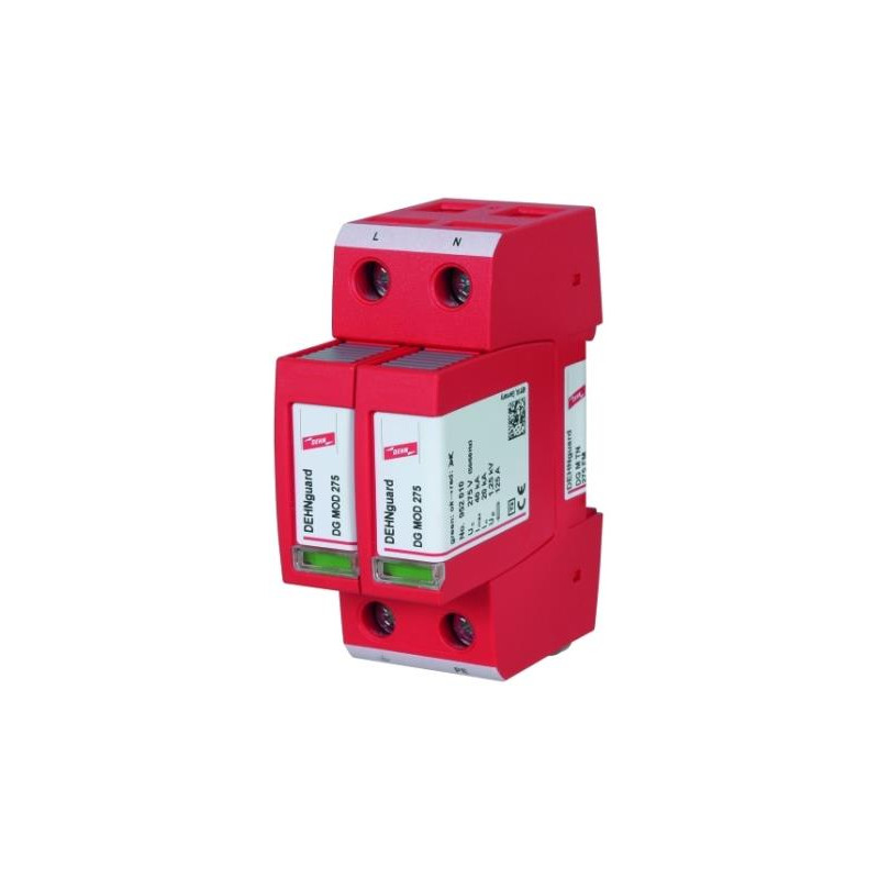 DEHNGUARD M TN 275 FM PARASURTENSION MODULAIRE BIPOLAIRE POUR RESEAUX MONOPHASES TN. PROTECTION DU TYPE 2 SELON EN61643-11. COURANT D'ECOULEMENT NOM 20KA(8/20). NIVEAU DE PROTECTION <1,25KV. TELESIGNALISATION PAR CONTACT INVERSEUR LIBRE DE POTENTIEL.
