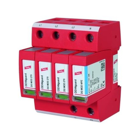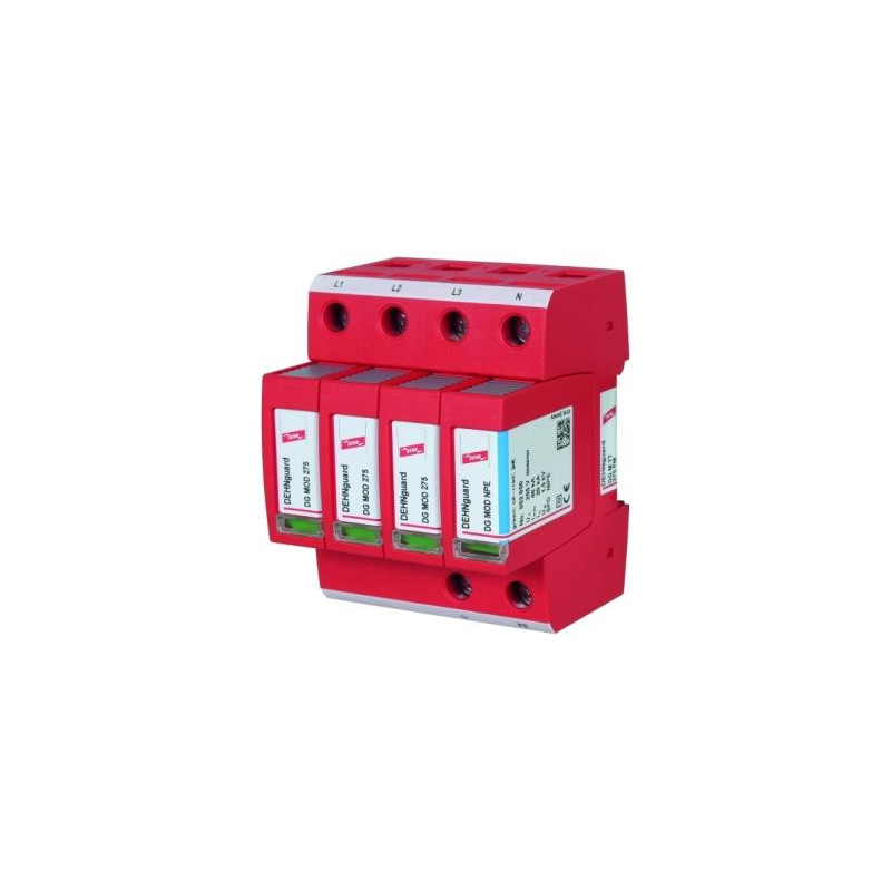 DEHNGUARD M TT 275 FM PARASURTENSION MODULAIRE TETRAPOLAIRE POUR RESEAUX TT. PROTECTION DU TYPE 2 SELON EN61643-11. COURANT D'ECOULEMENT NOM 20KA(8/20). NIVEAU DE PROTECTION <1,25KV. TELESIGNALISATION PAR CONTACT INVERSEUR LIBRE DE POTENTIEL.