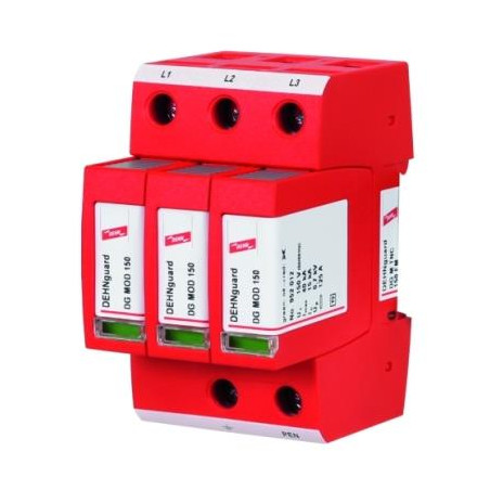 PARAFOUDRE MODULAIRE TYPE 2 POUR SYSTEMES TN-C (CONNEXION 3+0)/ TENSION MAX. DE REGIME PERMANENT AC: 150V. AVEC CONTACT SEC DE TELESIGNALISATION.