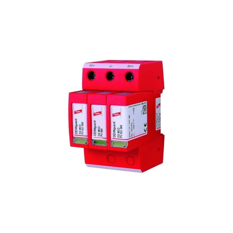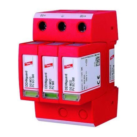 PARAFOUDRE MULTIPOLAIRE MODULAIRE AVEC DISPOSITIF DE DECONNEXION DU COURANT CONTINU EN 3 ETAPES POUR SYSTEMES PV JUSQU'A 1000 V DC, AVEC CONTACT DE TELESIGNALISATION POUR DISPOSITIF DU SURVEILLANCE (CONTACT SEC INVERSEUR)