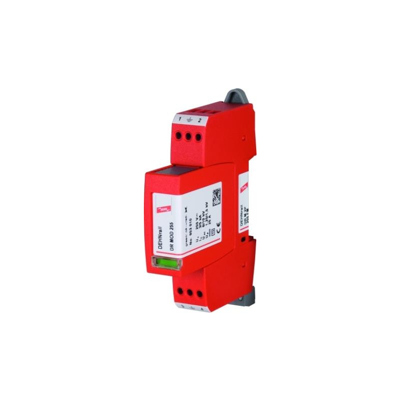 DEHNRAIL MODULAR M 2P 255. PARASURTENSEUR BIPOLAIRE DU TPE 3 SELON EN61643-11. DEBROCHABLE. COURANT D'ECOULEMENT NOM 5KA(8/20). NIVEAU DE PROTECTION < 1,25 KV. AVEC CONTACT DE TELESIGNALISATION EN CAS DE SOLLICITATION DU SYSTEME DE SURVEILLANCE.