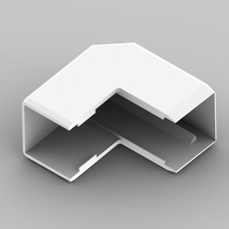 ANGLE EXTERIEUR, EN MATIERE SYNTHETIQUE BLANCHE EXEMPTES D'HALOGENES, POUR LE CANAL D'ALIMENTATION LHD 20X20. INSTALLEZ LES TRACES L'UNE CONTRE L'AUTRE ET CLIQUEZ L'ANGLE EXTERIEUR EN DESSUS.