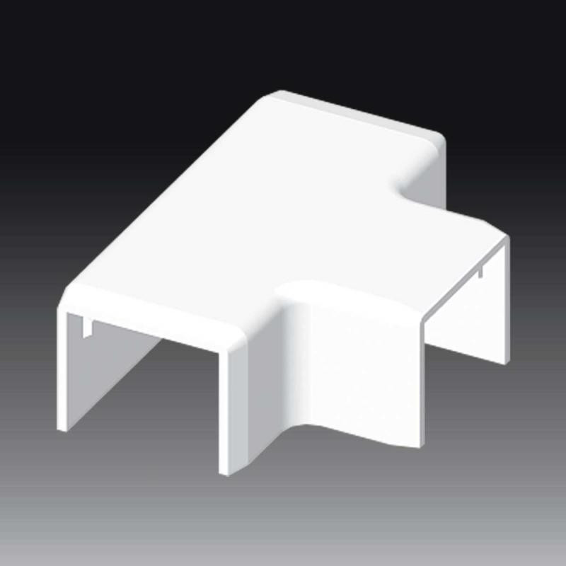 PIECE EN T, EN MATIERE SYNTHETIQUE BLANCHE, POUR LE CANAL D'ALIMENTATION LHD 25X20. INSTALLEZ LES TRACES L'UNE CONTRE L'AUTRE ET CLIQUEZ LA PIECE EN T EN DESSUS.