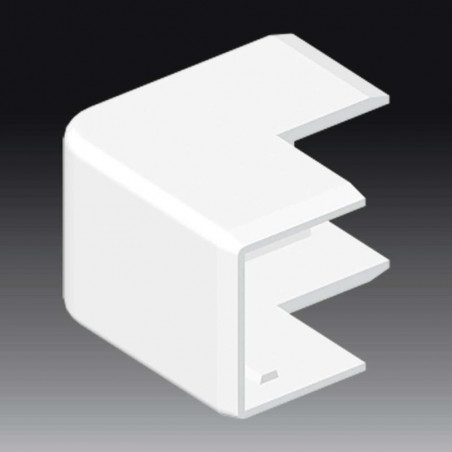 ANGLE EXTERIEUR, EN MATIERE SYNTHETIQUE BLANCHE, POUR LE CANAL D'ALIMENTATION LHD 30X25. INSTALLEZ LES TRACES L'UNE CONTRE L'AUTRE ET CLIQUEZ L'ANGLE EXTERIEUR EN DESSUS.