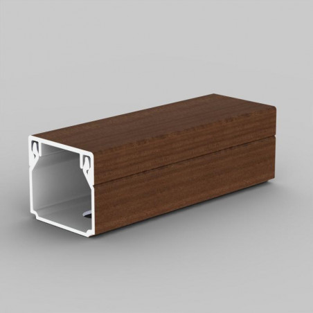 CANAL D'ALIMENTATION, BASE ET COUVERCLE, EN MATIERE SYNTHETIQUE IMITATION CHENE FONCE, HAUTEUR 21 MM, PROFONDEUR 19 MM ET LONGUEUR 2 M. LA SECTION EST DE 260 MM2. LE FOND DE LA GAINE EST POURVU D'ORIFICES DE FIXATION. EMBALLEE EN CARTON.