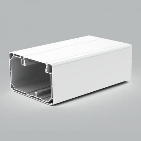 GAINE MURALE, EN MATIERE SYNTHETIQUE BLANCHE, AVEC HAUTEUR DE 90 MM, PROFONDEUR DE 55 MM ET UNE LONGUEUR DE 2 M. LES GAINES A DOUBLE PAROI SONT TRES SOLIDES. COUVERCLE CORRESPONDANT AVEC UNE HAUTEUR DE 45MM ET UNE LONGUEUR DE 2 M INCLUS. GAINE ET COUVERC