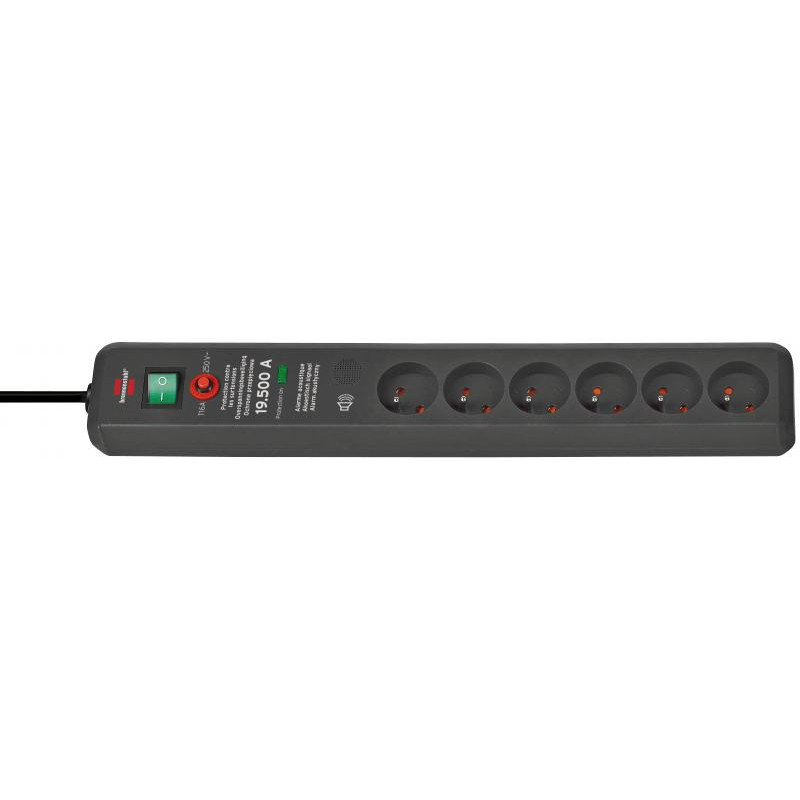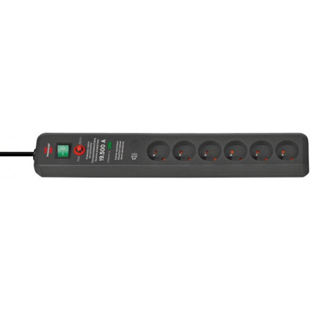 PROLONGATEUR MULTIPRISE SIGNAL SONORE SECURE-TEC AVEC PARASURTENSEUR 19.500A ET SIGNAL ACOUSTIQUE 6 PRISES ANTHRACITE 3M H05VV-F 3G1,5 *FR*