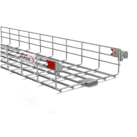 TREILLIS À CÂBLES, ZINGAGE ÉLECTROLYTIQUE, HAUTEUR 100 MM, LARGEUR 450 MM, LONGUEUR 3 M. L EMBOUT EST POURVU DES ACCOUPLEMENTS CLICK RAPIDE POUR LA RÉALISATION DUN ACCOUPLEMENT DANS LES DEUX SECONDES. AVEC UNE CONTINUITÉ ÉLECTRIQUE CONFORMÉMENT À IEC 61