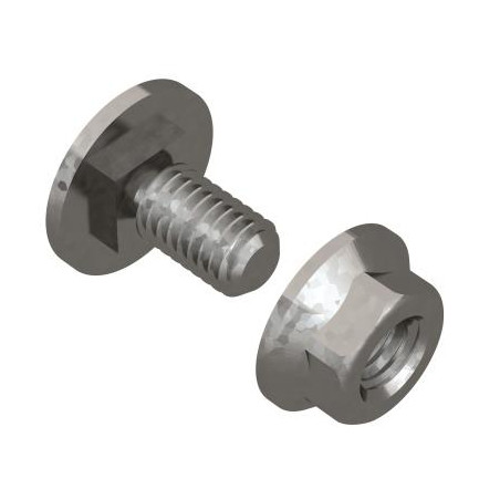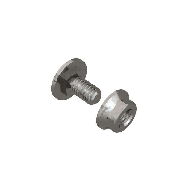BOULON M6 X 12 A TETE BOMBEE ET COLLET CARRE ET UN ECROU SIX PANS AVEC EMBASE CRENTEE M6, GALVANISE A CHAUD.