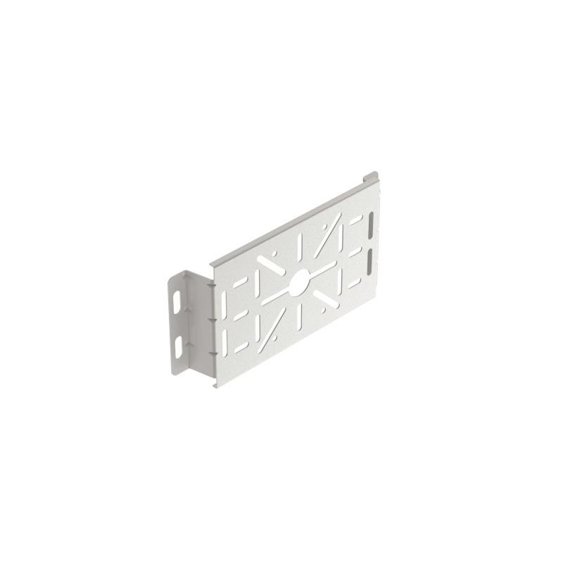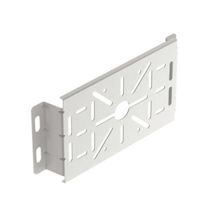 PLAQUE DE MONTAGE, 109 MM X 170 MM, EN TOLE D'ACIER GALVANISEE A CHAUD, EST ATTACHEE AVEC DES BOULONS A COLLET CARRE M6X16 ET DES ECROUS A EMBASE CRENELE M6 SUR LE REBORD RELEVE DU CHEMIN DE CABLES. LA PLAQUE EST POURVUE D'UN GABARIT UNIVERSEL. AINSI, IL