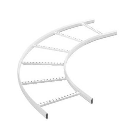 LA COURBE EXTERIEURE A 90 15-300 EST EN ACIER GALVANISE A CHAUD CONFORMEMENT A LA NORME EN ISO 1461 PUIS POURVU D'UN REVETEMENT POLYESTER BLANC (RAL 9010).LA COURBE MESURE 1133 DE LONG, 1133 MM DE LARGE ET 55 MM DE HAUT. LE RAYON INTERIEUR EST DE 704 MM.
