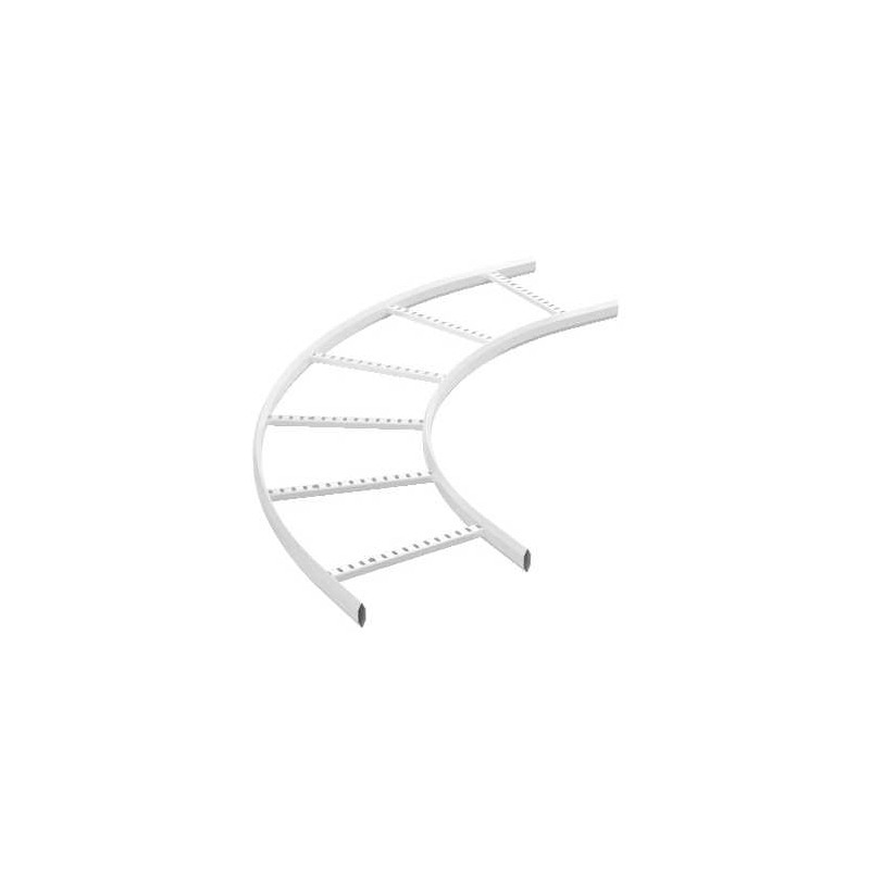 LA COURBE EXTERIEURE A 90 15-800 EST EN ACIER GALVANISE A CHAUD CONFORMEMENT A LA NORME EN ISO 1461 PUIS POURVU D'UN REVETEMENT POLYESTER BLANC (RAL 9010).LA COURBE MESURE 2133 DE LONG, 2133 MM DE LARGE ET 55 MM DE HAUT. LE RAYON INTERIEUR EST DE 1204 MM