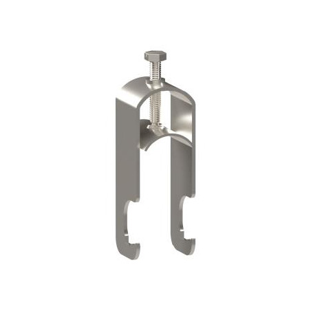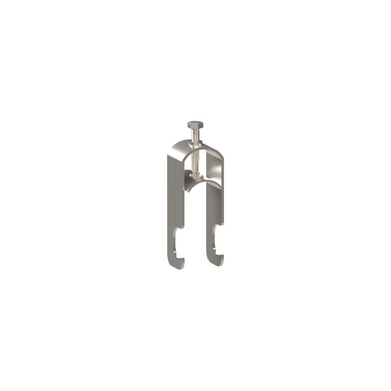 LA PINCE A CABLES TYPE ARX2-28 EST EN ACIER AVEC UN REVETEMENT ZINC+ CONFORMEMENT A LA NORME NBN EN 10346. (CLASSE DE CORROSION C8 CONFORMEMENT NBN EN 61537). LA PINCE MESURE 30 MM DE LONG, 17 MM DE LARGE ET 45 MM DE HAUT.POUR FIXER 2 CABLES AUX ECHELONS
