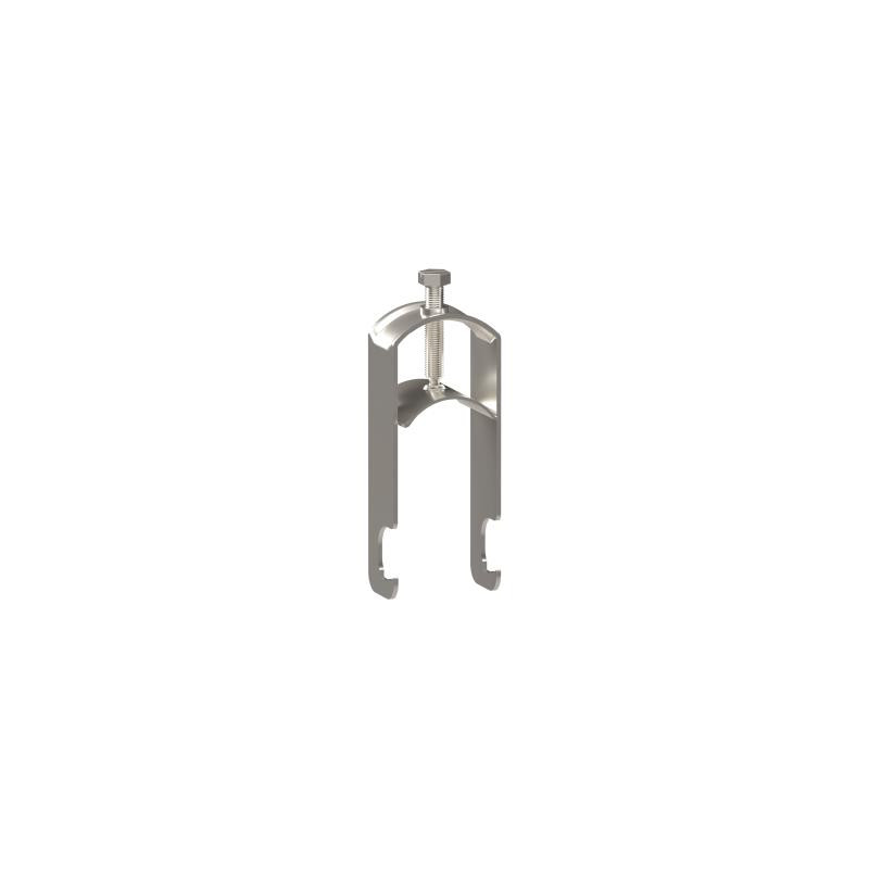 LA PINCE A CABLES TYPE ARX1-XX EST EN ACIER AVEC UN REVETEMENT ZINC+ CONFORMEMENT A LA NORME NBN EN 10346. (CLASSE DE CORROSION C8 CONFORMEMENT NBN EN 61537). LA PINCE MESURE 30 MM DE LONG, 49 MM DE LARGE ET 122 MM DE HAUT.POUR FIXER 2 CABLES AUX ECHELONS