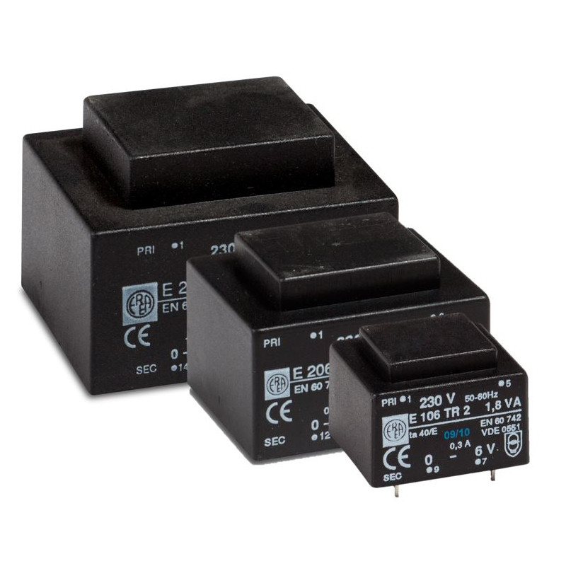 Marque: EREARéférence: E 106TR4Description: 1ph Tfo de securite PCB - picots 500mm - 230V 0-6V - P 32VAEmballage: 100