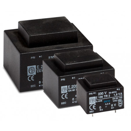 Description: 1ph Tfo de securite PCB - picots 500mm - 230V 2x0-15V - P 25VA