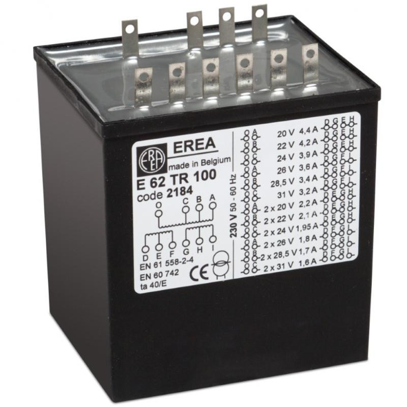 Marque: EREARéférence: E 62TR100Description: 1ph Transfo de protection - 230V 0-20-22-24-26-285-31V P 100VAEmballage: 1