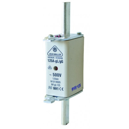 M1GL100 - CARTOUCHE A COUTEAU (FUSIBLE A COUTEAU HPC) NH DIN, VOYANT INDICATEUR COMBINE, GL/GG PROTECTION DE LIGNES/PROTECTION D'APPAREILS GAMME COMPLETE (LENT/RAPIDE), TAILLE NH1 T1 500V 100A(ANCIENNE REFERENCE GE: 777181 / ANCIENNE REFERENCE VYNCKIER 3
