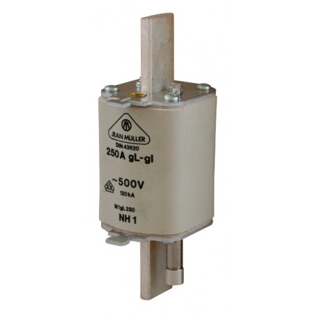 M1GL250K - CARTOUCHE A COUTEAU (FUSIBLE A COUTEAU HPC) NH DIN, AVEC PERCUTEUR, GL/GG PROTECTION DE LIGNES/PROTECTION D'APPAREILS GAMME COMPLETE (LENT/RAPIDE), TAILLE NH1 T1 500V 250A(ANCIENNE REFERENCE GE: 777462 / ANCIENNE REFERENCE VYNCKIER 320564030)